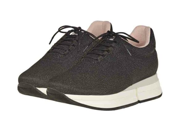 Zapatilla deportiva modelo Christy en tela negra mosaico, suela de goma de 4,5cm, plantilla de piel y forro de tela